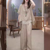 Our Women's Elegant Solid Color Loose Cotton Linen 2-Piece Set combines elegance, comfort, and versatility, offering a chic and sophisticated look.
