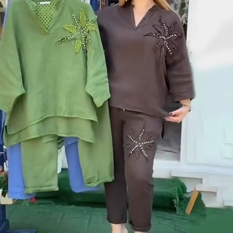 ⏳Time-limited Special⏰Women's loose breathable cotton-linen 2-piece set — top & pants
