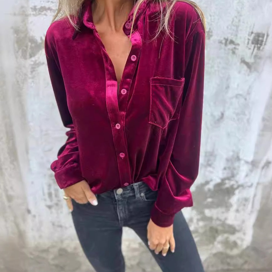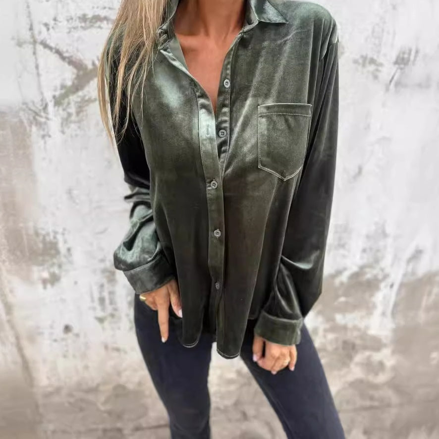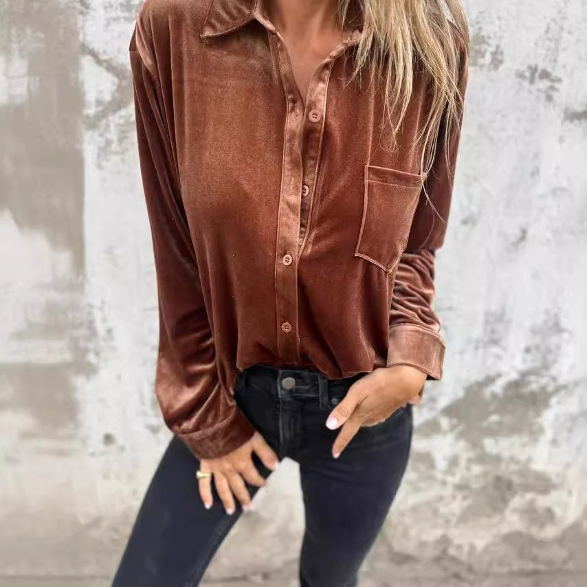 Women's Long-Sleeve Button-Down Shirt with Pocket