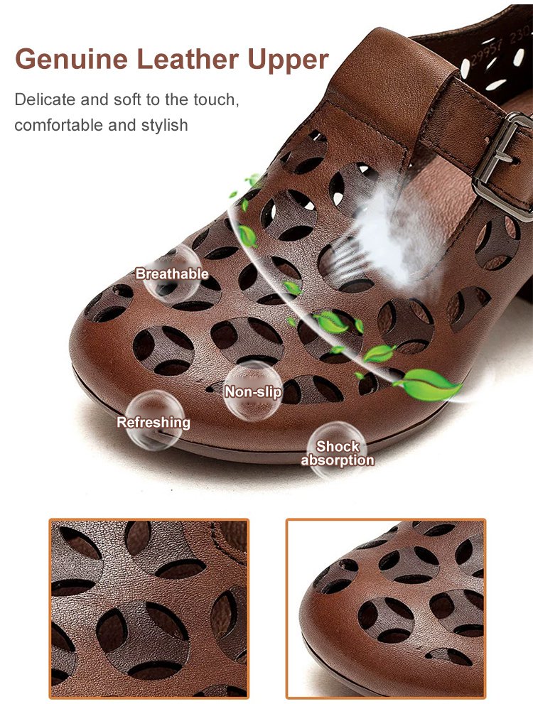 Hollow design: The hollow design adds a touch of sophistication to these sandals. This makes them perfect for any occasion, from a summer barbeque to a night out on the town.