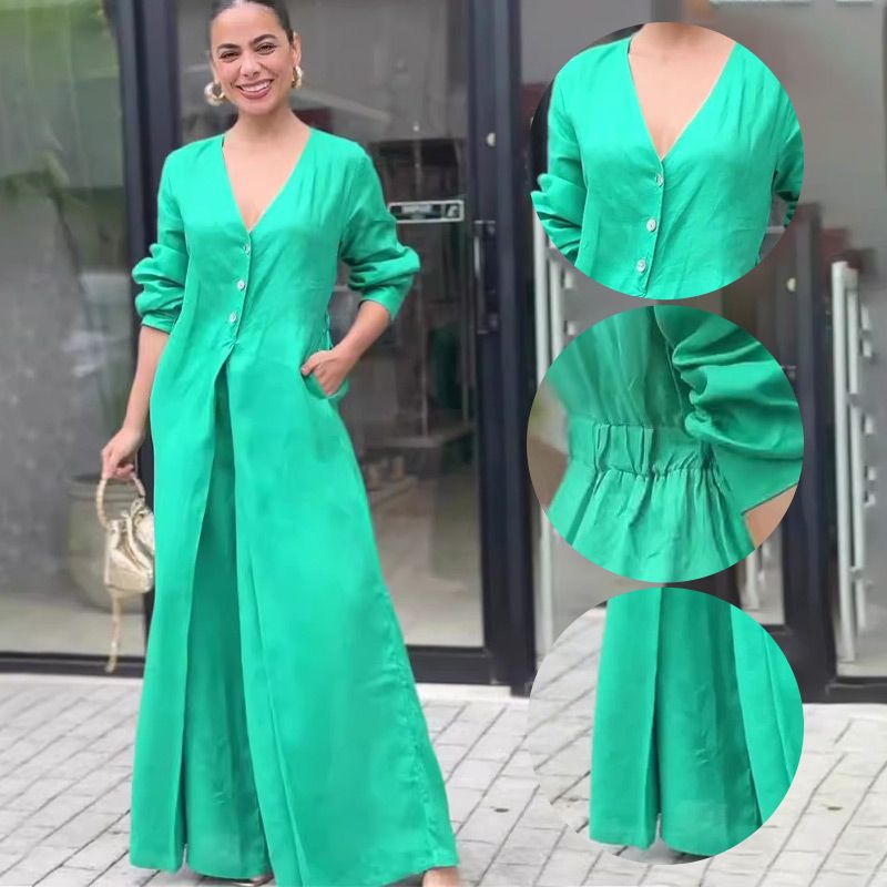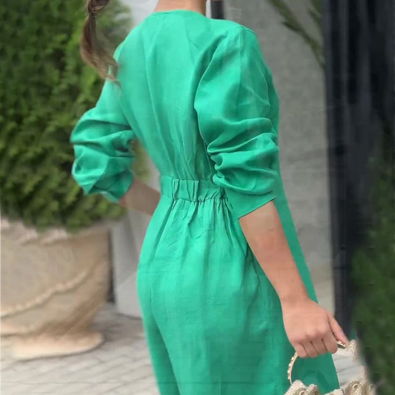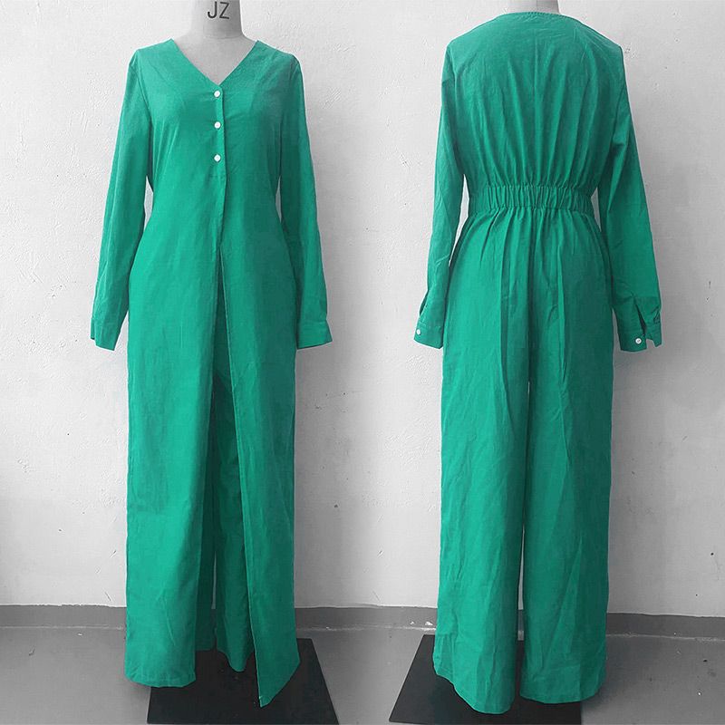 Package Includes: 1 * Women's Solid Color V-Neck Button-Up Jumpsuit