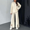 Women's Cozy Ribbed Knit Two-Piece Set with Slit-Leg Pants