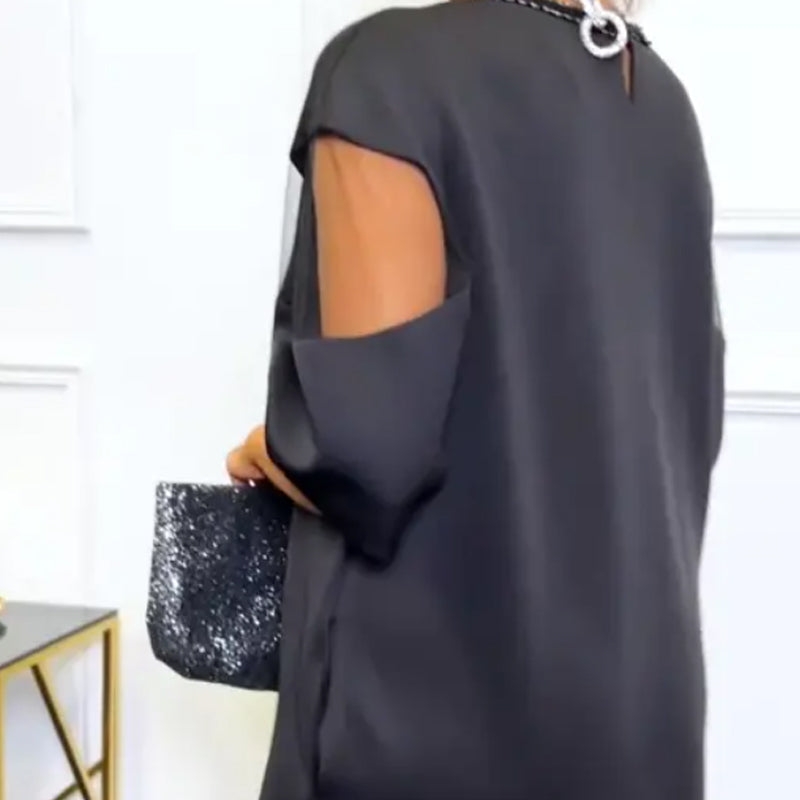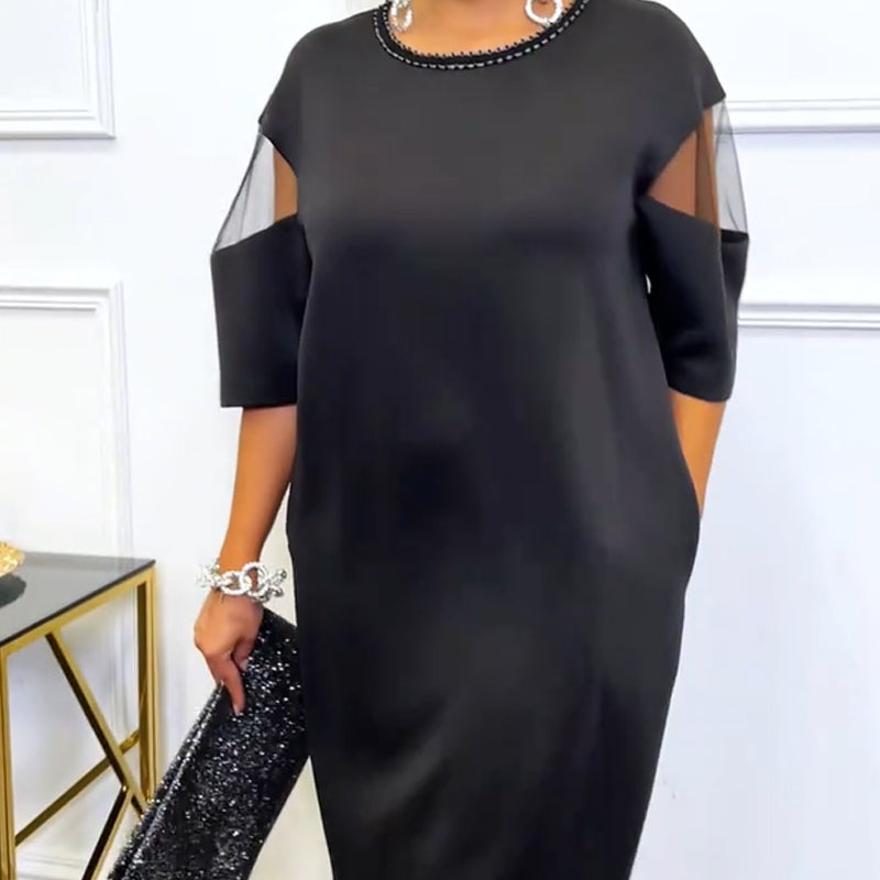 Elegant Round Neck Semi-Sheer Sleeve Dress