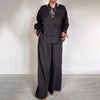 FASHIONABLE COMFORT - The top features a stylish round neckline and layered details, adding a touch of modern elegance. The straight-leg pants are loose yet tailored for ease of movement.