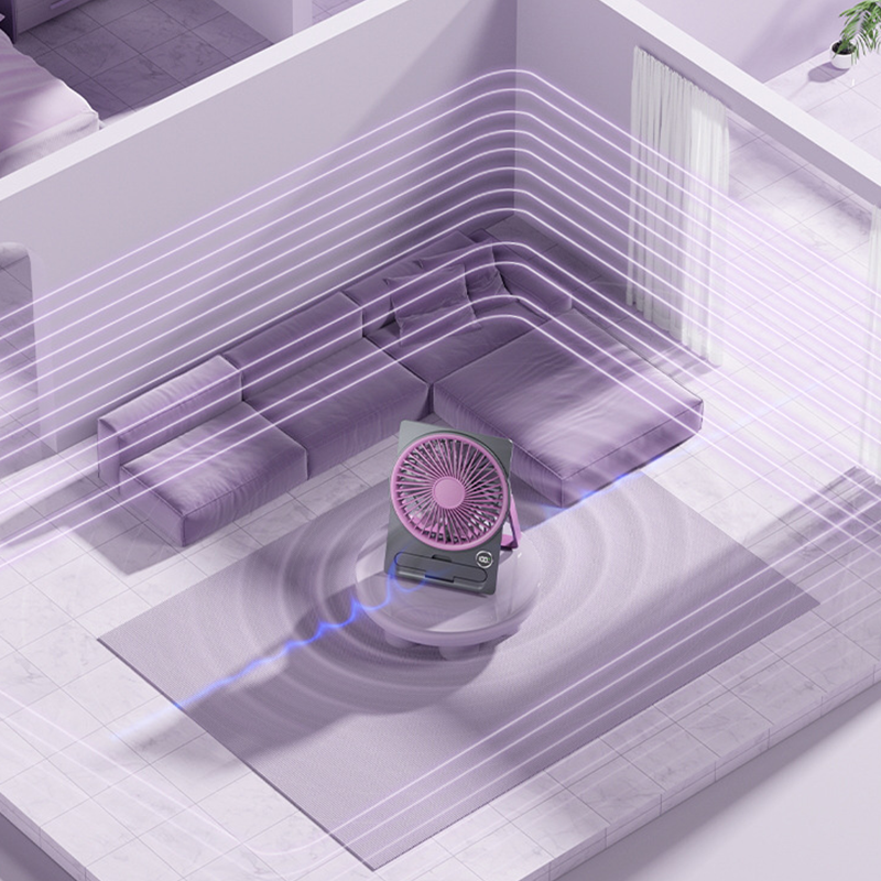 WHISPER-QUIET OPERATION WITH STRONG AIRFLOW: Enjoy powerful wind without the noise. The fan is equipped with advanced sound-reduction technology, ensuring a quiet, peaceful environment while providing strong airflow. Whether you’re using it at your desk or in a quiet room, the noise-free design keeps you cool without any distractions.