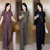 Package Included:1* Elegant Solid Color Top Loose Pants 2-Piece Set