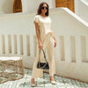 EFFORTLESS STYLE: The short-sleeve top features a simple yet elegant design that complements the wide-leg pants. This set is designed to be both stylish and easy to wear, offering a polished look with minimal effort.