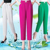 Women's Solid Elastic High Waist Tapered Pants are made from Polyester. Comfy fit, elastic waist makes it is easy to pull on, two side pockets design, loose fit style with high waist.