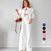 COMFORTABLE FIT: The set includes a zip-up jacket and wide-leg pants. The jacket features a full zipper for easy wearing and removal, while the wide-leg pants provide a relaxed fit, offering both style and comfort.