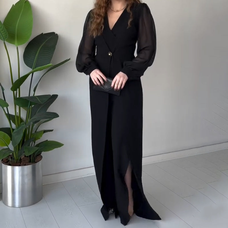 Package Includes:1*V-neck Long Sleeve Slit Maxi Dress