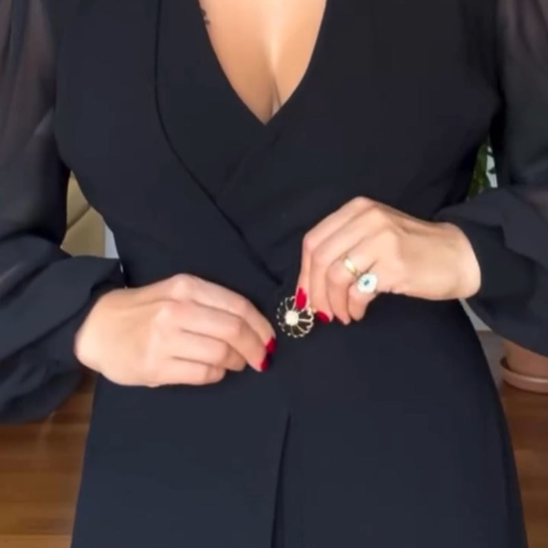 SEXY V-NECK DESIGN - The elegant V-neckline creates a striking focal point, elongating the neck and drawing attention to the collarbone. This bold yet tasteful design brings an element of allure, making it a great choice for formal events or evening affairs. It gives you a sophisticated look with just the right amount of charm.