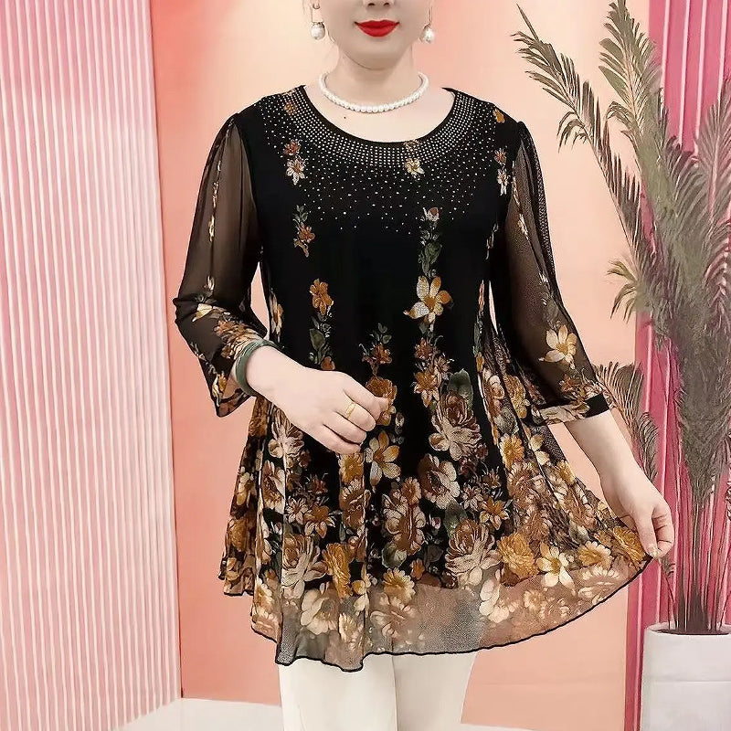 ELEGANT TIERED RHINESTONE NECKLINE: The tunic features a stunning tiered rhinestone design around the neckline, adding a touch of sparkle and sophistication to your casual look.
