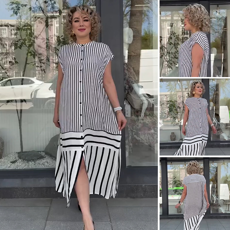 Package Includes: 1* Women's Loose Striped Button Down Long Dress