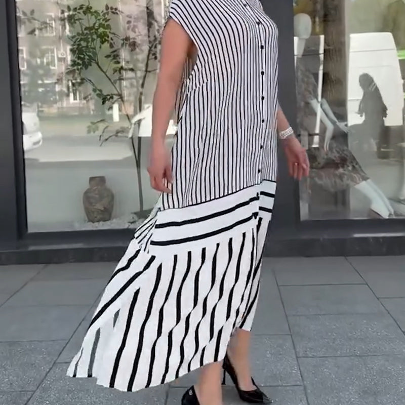 TIMELESS STRIPED ELEGANCE: The classic stripe pattern creates a slimming silhouette while adding visual interest to your outfit. The alternating color bands provide effortless sophistication that transitions seamlessly from casual daytime wear to evening occasions. This versatile print never goes out of style, ensuring seasons of wear.